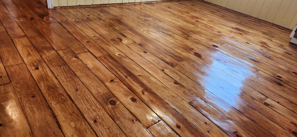 A collection of images showcasing the process of restoring wooden floors, including sanding, polishing, and applying finish. The images capture the transformation of wooden floors in various home interiors and outdoor settings.